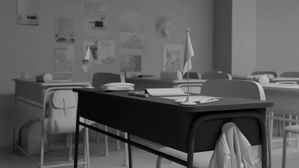 Eine Frau mit Plastiktüten an den Füßen steht im Wald, am Rand von Moskau. Sie ist ehe­ma­li­ge Lehrerin. Es ist Winter und alles vol­ler Schnee. Um sie her­um sind jun­ge Tagelöhner aus Zentralasien, die die­sen Wald abhol­zen sol­len. Die Frau ver­tei­digt mit aller Kraft den Wald. Der Wald soll dem Bau einer neu­en Schule wei­chen. Die Schule wie­der­um wird zur Trägerin der Staatsideologie wer­den, die die äuße­re mili­tä­ri­sche Expansion legi­ti­mie­ren soll. Es ist Mitte Februar 2022. Es ist kurz vor dem Krieg, Die Gesetzeslage ver­schärft sich, Lehrkräfte und Schüler*innen tre­ten in gegen­sei­ti­ge Beobachtung: Kurz nach der Invasion spricht sich eine jun­ge rus­si­sche Lehrerin gegen den Krieg aus. Sie wird heim­lich auf­ge­zeich­net und von einer Schülerin denun­ziert. Sie flieht nach Berlin, wo eine deut­sche Schulklasse ihren Fall nach­stellt und zu ver­ste­hen ver­sucht, wie es zu dem Verrat kam. Der Film folgt die­sen Ereignissen, um über Prozesse der poli­ti­schen Überwältigung und die Bedingungen des Widerstands nachzudenken.