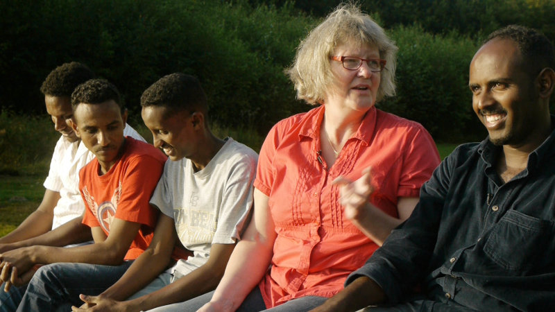 Fünf eritreische Flüchtlinge werden in einem alten Backsteingebäude außerhalb des Dorfes Strackholt in Ostfriesland untergebracht, wo sie auf den Ausgang ihres Asylverfahrens warten. Abseits einer Stadt – selbst die Metropole Aurich ist weit entfernt – scheinen durch das Nichtstun, Langeweile und Depression, Konflikte vorprogrammiert zu sein. Ein pensionierter Schuldirektor und eine Journalistin kümmern sich um die Männer und versuchen, ihnen über Sprache und Kontakte zur lokalen Bevölkerung einen Weg in ein selbstbestimmtes Leben zu ermöglichen. Auch die Flüchtlinge selbst wollen nicht nur in der Warteschleife festhängen, sondern sehnen sich nach Arbeit und Beschäftigung. Die Gemeinde stellt sie daraufhin beim Bauhof als Ein-Euro-Jobber ein. Doch die gutgemeinte Starthilfe hat auch ihre Tücken – und über allem schwebt die Frage: Dürfen die Neuankömmlinge überhaupt bleiben oder müssen sie zurück in ihre Heimat? „Gestrandet ist daher ein sehr puristischer und beobachtender Film. Und ich wollte auch das Aufeinandertreffen der Neuankömmlinge und der Ehrenamtlichen beleuchten. Ich wollte ihr Engagement zeigen, aber auch die vielen Probleme und Missverständnisse, die sich in so einem Prozess auftun und dass die Gruppe trotz aller Schwierigkeiten nicht auseinandergebrochen ist.“ (Lisei Caspers)